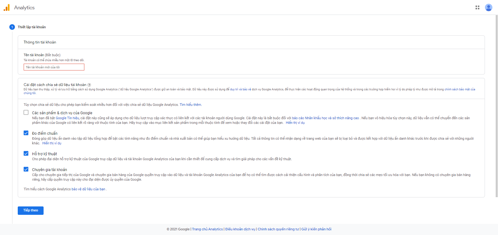Bước 2 Đăng kí tài khoản để lấy mã Google Analytics